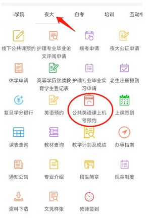 2、预约方法:通过手机端复旦继续教育“微学院-夜大-公共英语课上机考预约”预约公共英语考试的具体时间与场次。