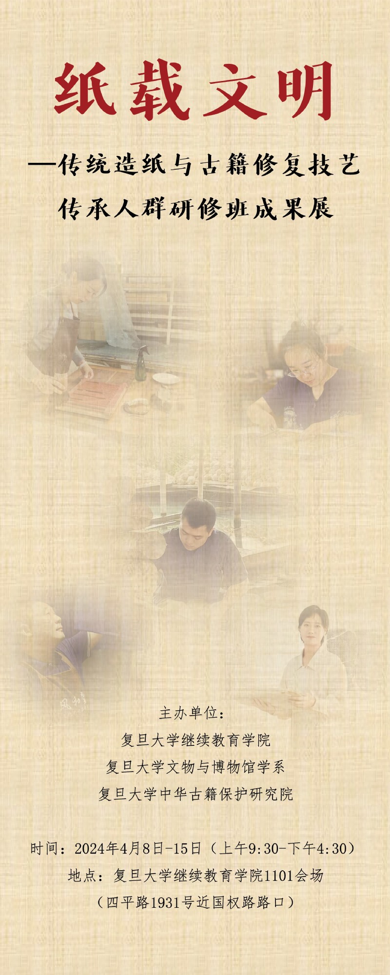 纸载文明——传统造纸与古籍修复技艺传承人群研修班成果展于2024年4月8日至15日在williamhill官方网站继续教育学院1101会场展出。