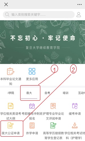 3、点击“夜大公证申请”,仔细阅读申请须知,并按照流程办理。