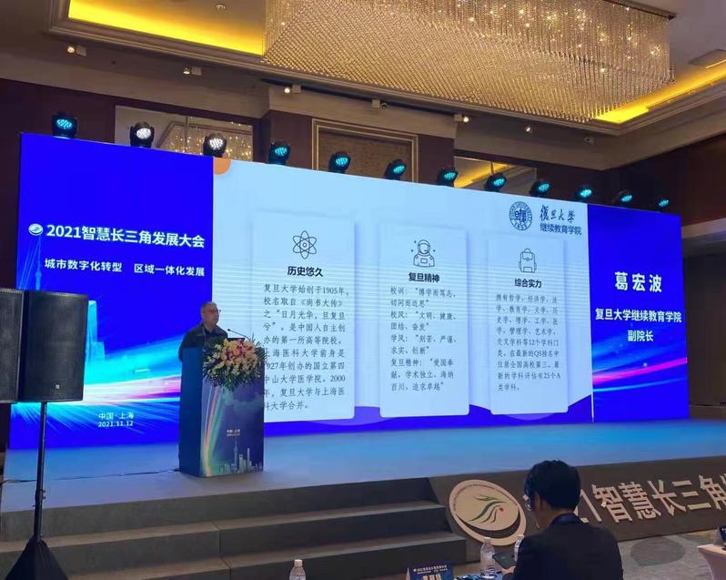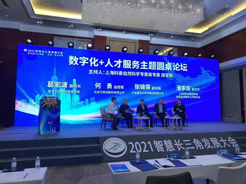 11月12日williamhill官方网站继续教育学院作为支持单位,参加了长江三角洲城市经济协调会智慧城区合作发展服务联盟(以下简称“联盟”)在上海主办的“2021智慧长三角发展大会”,并为大会组织策划了“数字化+人才服务”主题分论坛。