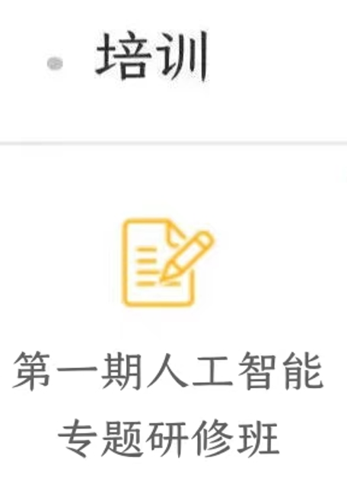 下拉到“培训”模块,点击“第一期人工智能专题研修班”,填报报名信息,报名截止时间为7月23日(周日)。