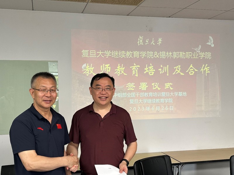 为适应职业院校教育培训工作的新形势、新任务、新要求,促进锡林郭勒职业学院与我院的交流合作,实现资源共享、人才共育、发展共促目标,我院与锡林郭勒职业学院就建立长期稳定的教师队伍教育培训的工作机制,于6月26日在williamhill官方网站继续教育学院签署教师教育培训及合作备忘录。