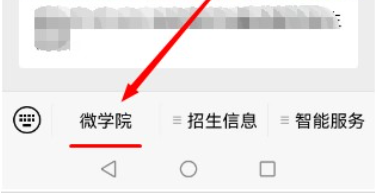 2、进入微信公众号,点击右下“微学院”进入“夜大”界面